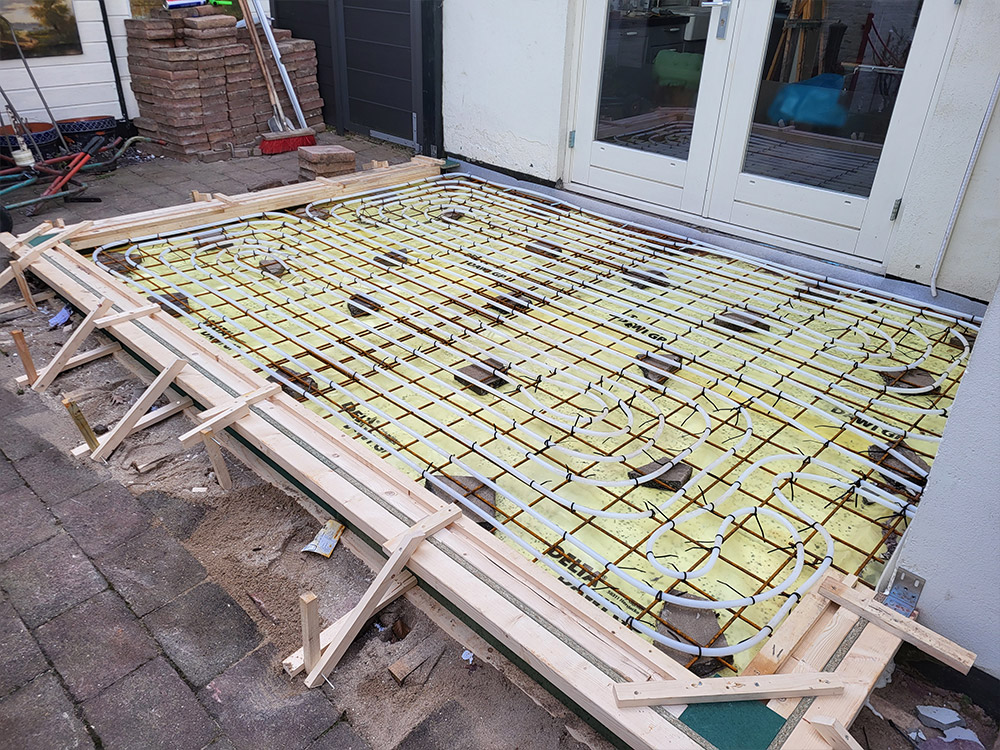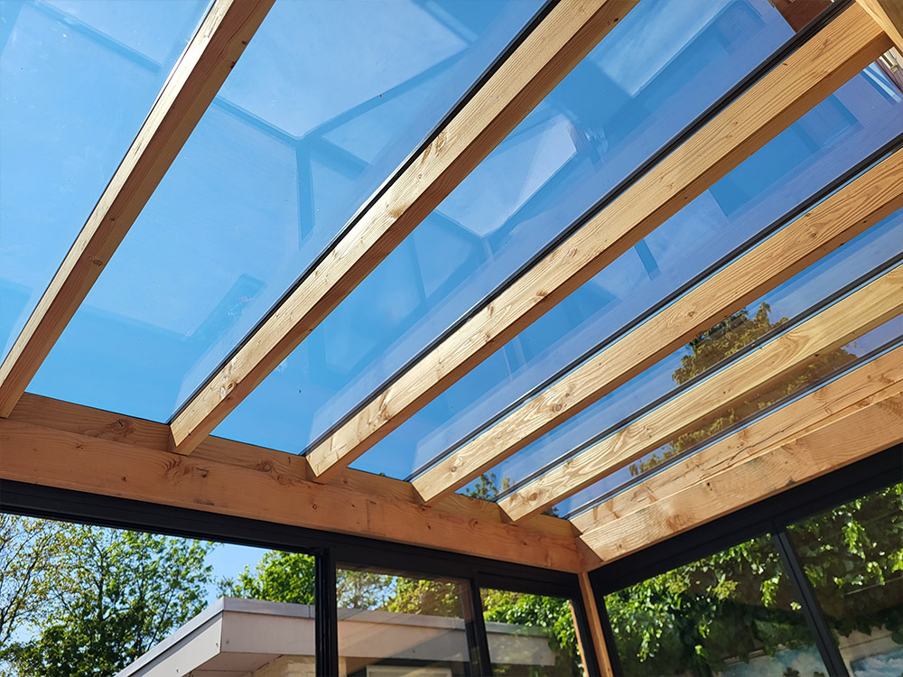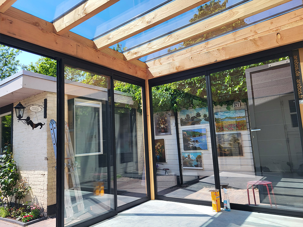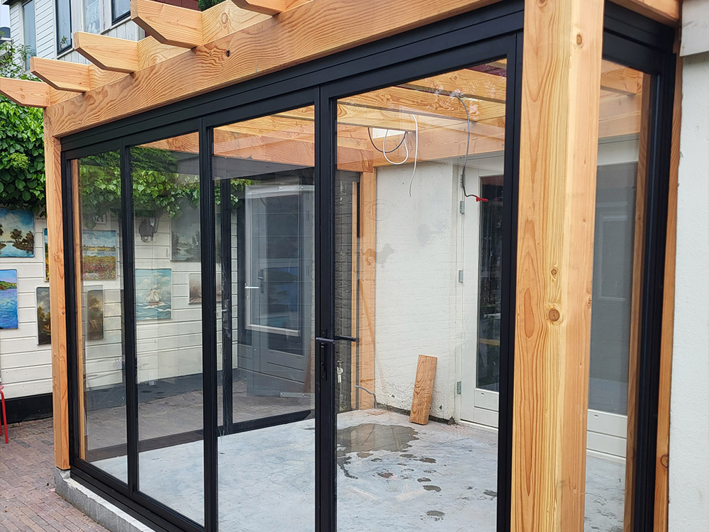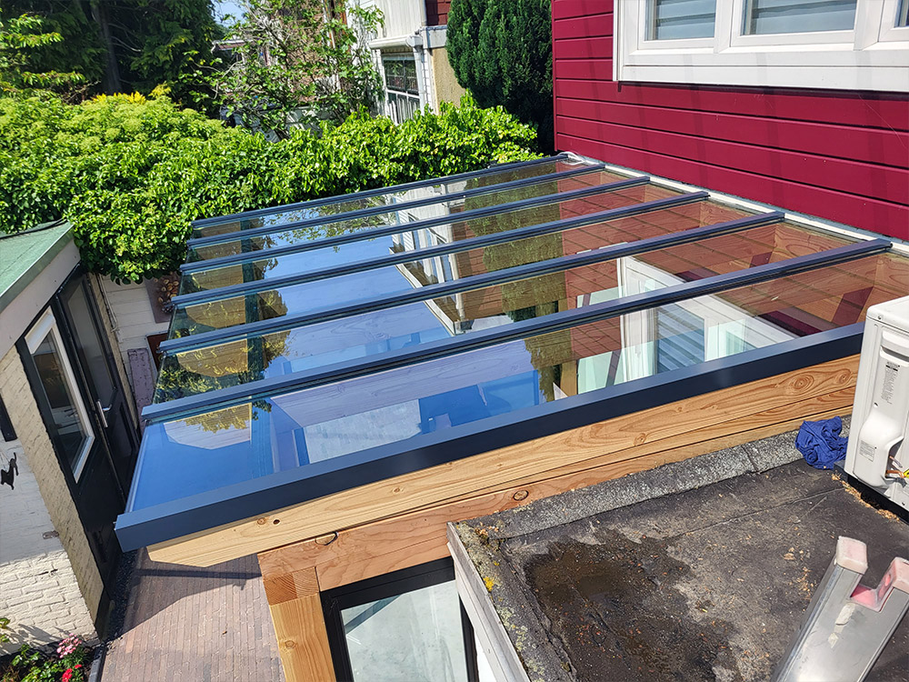 Aanbouw veranda met glazen dak