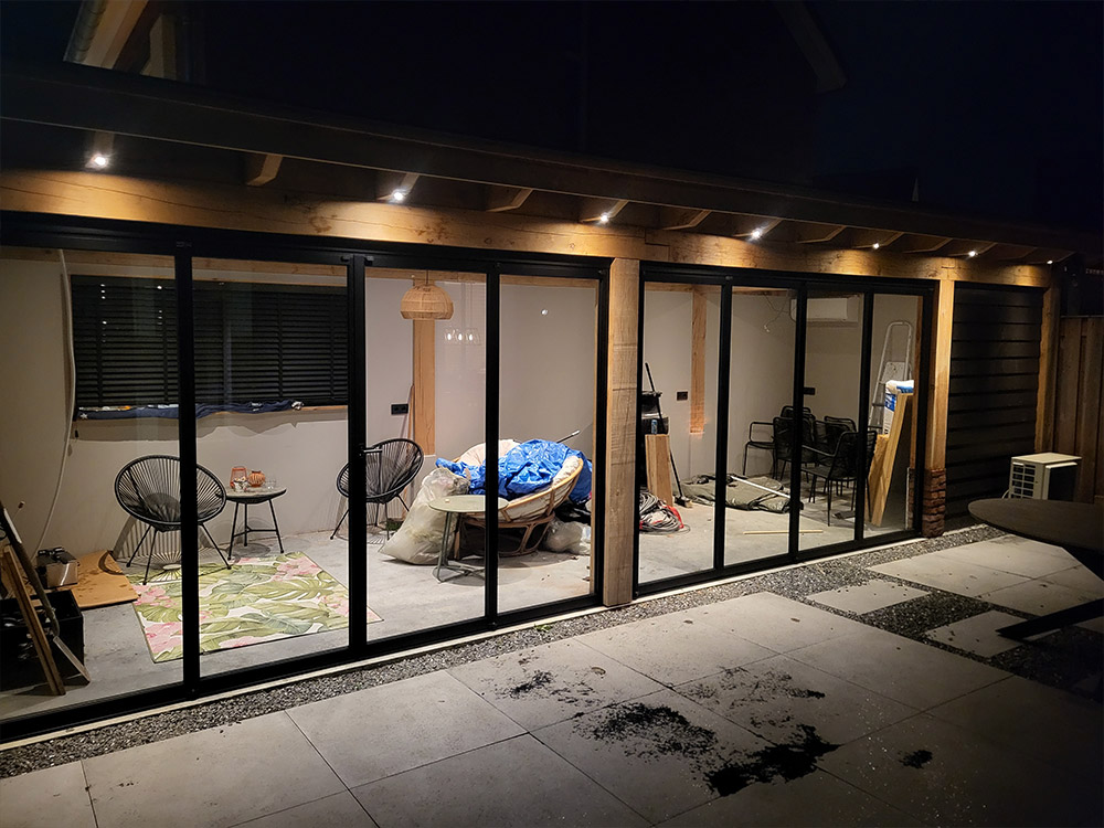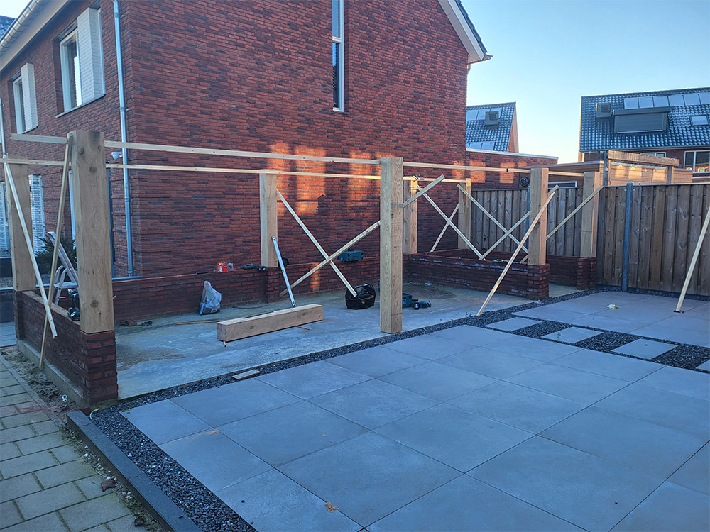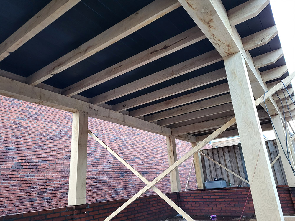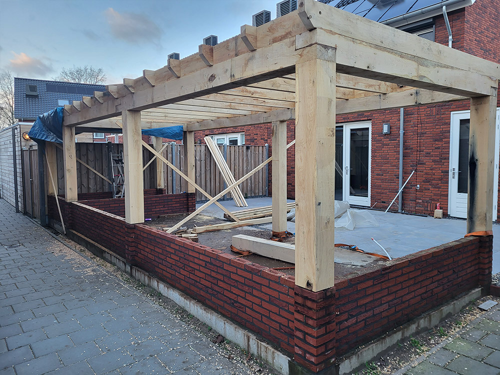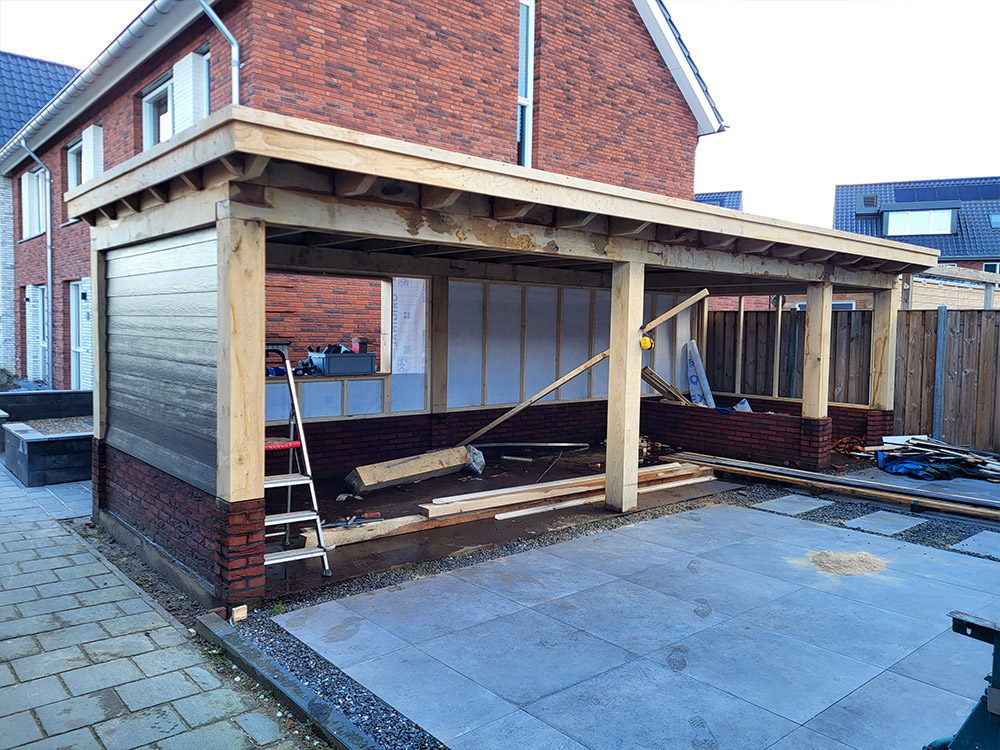 Eikenhouten overkapping met betonvloer en gemetselde borstweringAlle projectenDirect contactBel 06-11 44 84 99