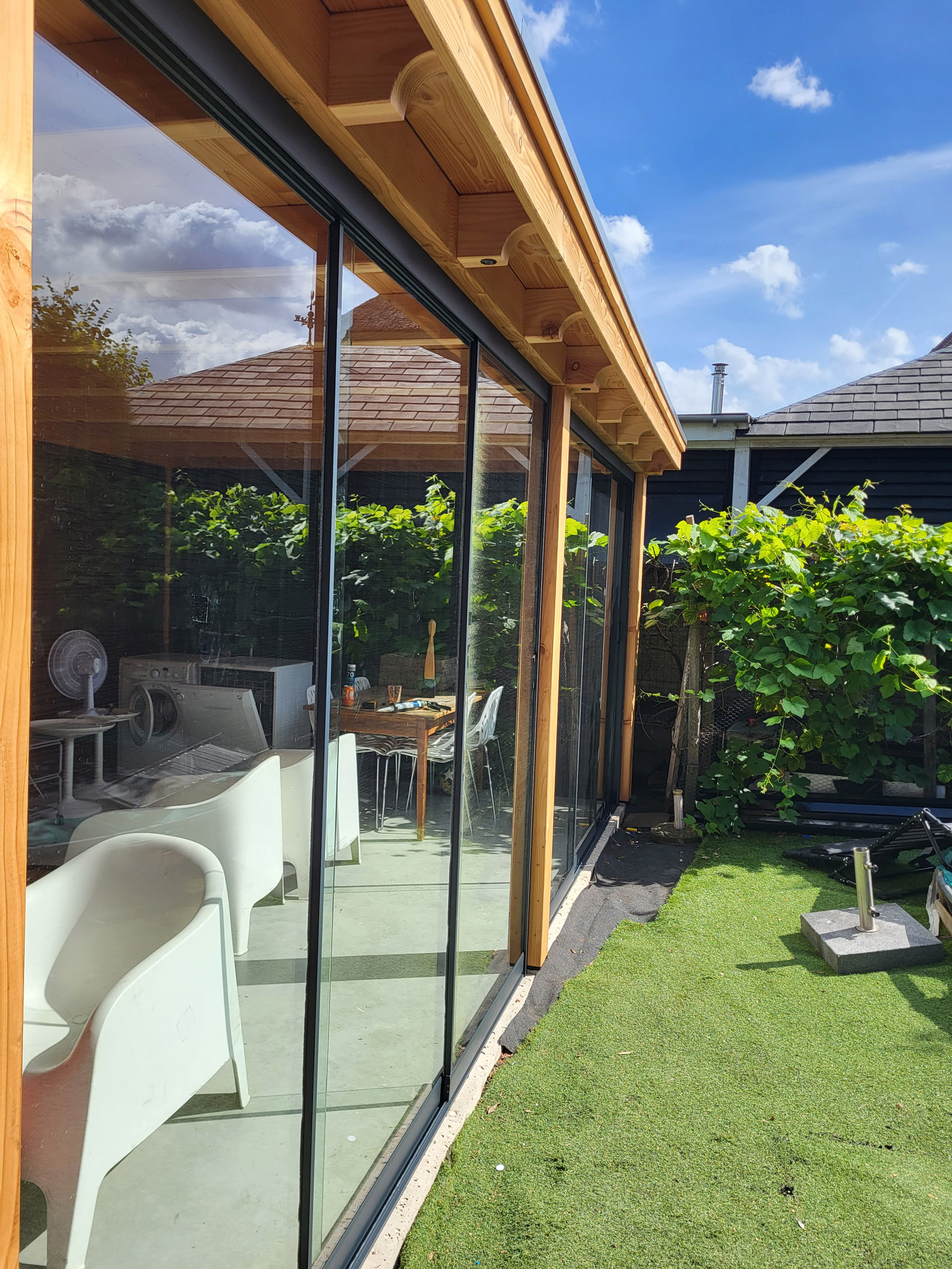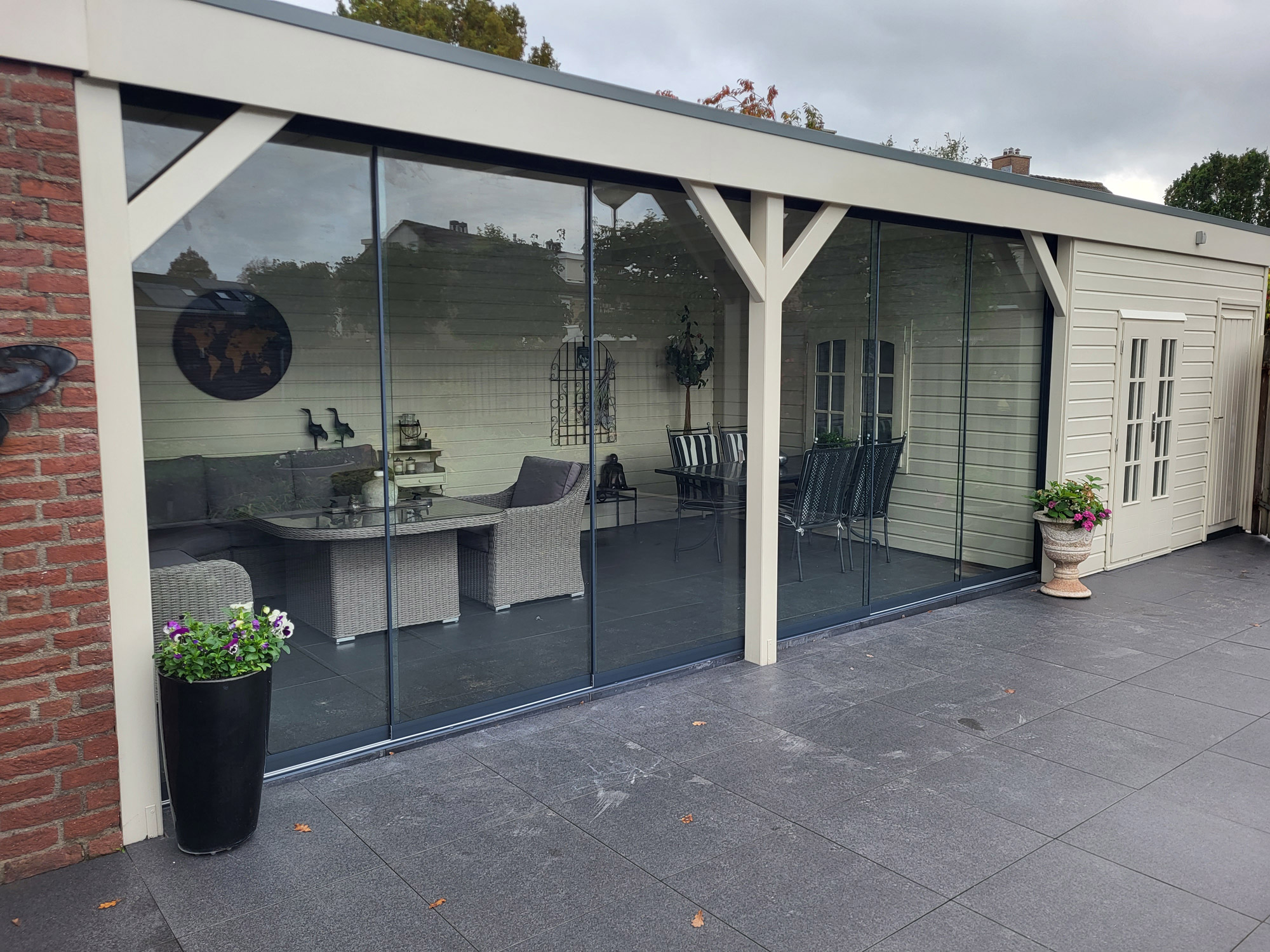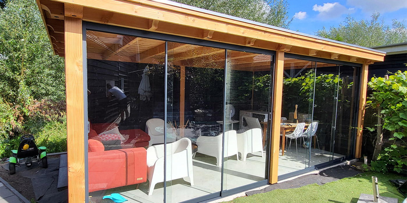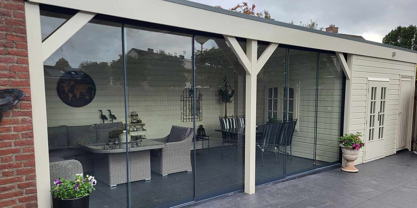 Wij leveren en monteren de veel gevraagde glazen schuifwanden. Doormiddel van deze glaspanelen heeft u binnen een handomdraai uw overkapping/buitenverblijf afgesloten. Heeft u interesse? vraag naar de mogelijkheden.
