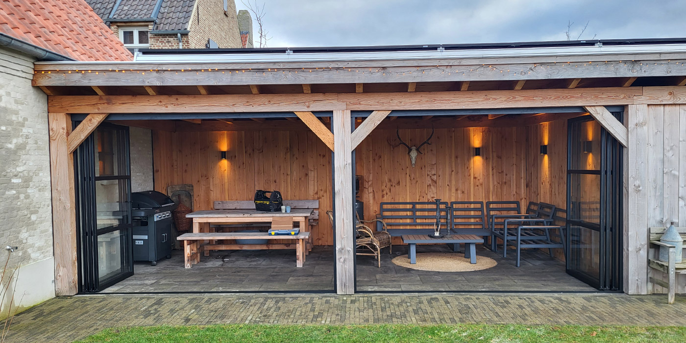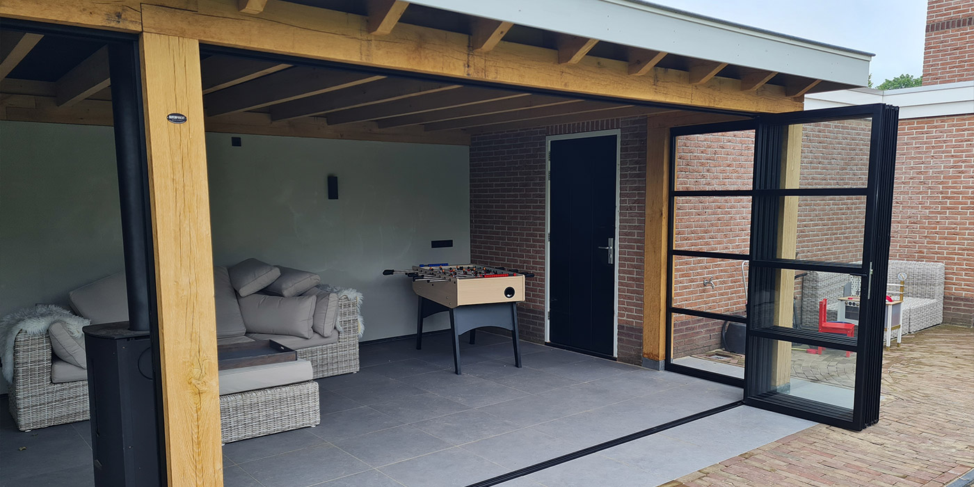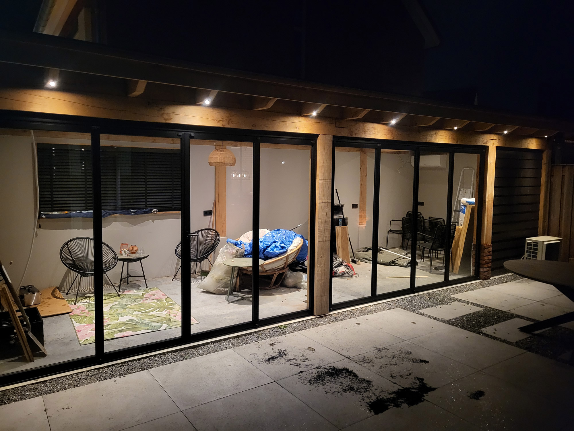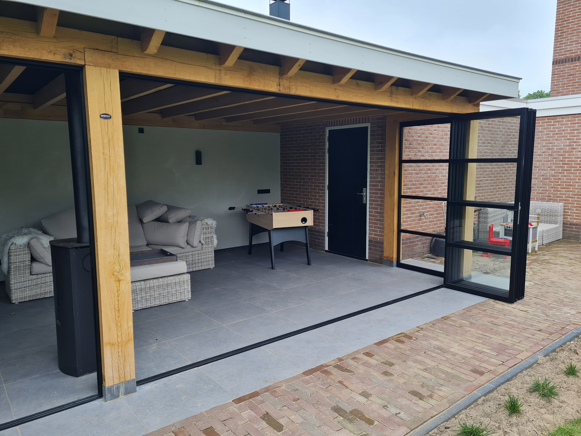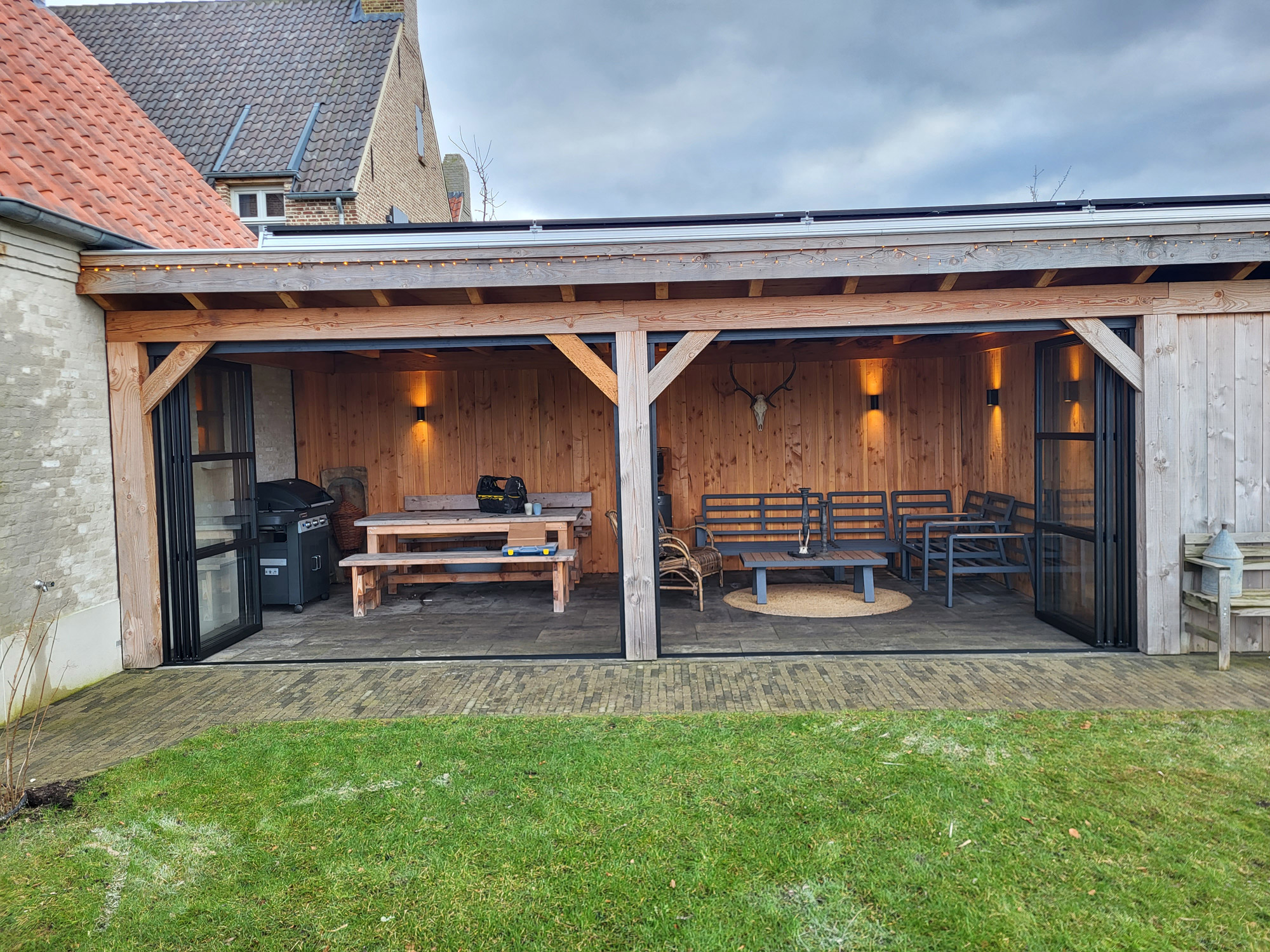 Wilt u uw buitenverblijf volledig afsluiten en ook een maximale doorloop blijven houden? Dan is dit systeem enorm geschikt voor uw buitenverblijf. Dit systeem is een tot in de kleinste detail perfect afgewerkt product, tevens is dit systeem ook verkrijgbaar in dubbel glas waardoor u de warmte goed binnen houd!