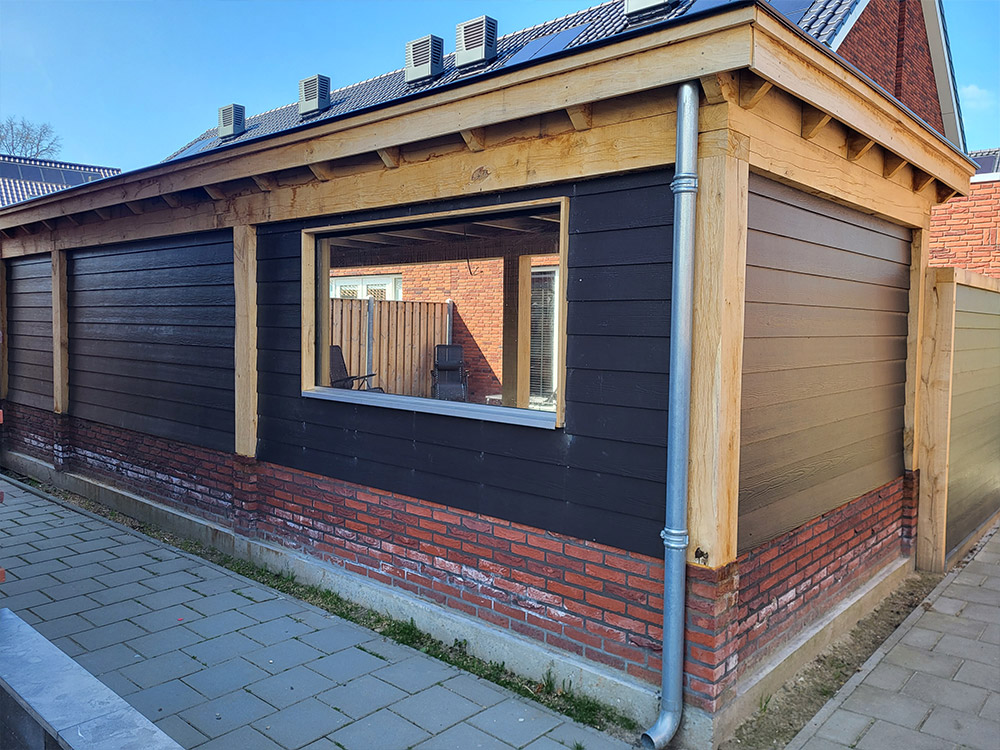 Eikenhouten overkapping met betonvloer en gemetselde borstweringAlle projectenDirect contactBel 06-11 44 84 99